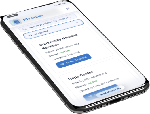 Begin your journey today with NH Guide! Download the app or use our web tool to connect with the right service provider, helping you navigate homelessness effectively and regain stable housing.